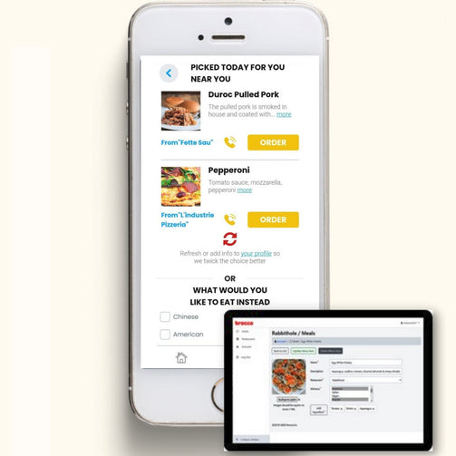 How the mobile app works? Brocco's Mobile App offers lunch choices that are custom pre-selected for a user from the local restaurants. A user can save time on her "next meal" discovery while enjoying the most suitable meals for her taste health and goals.