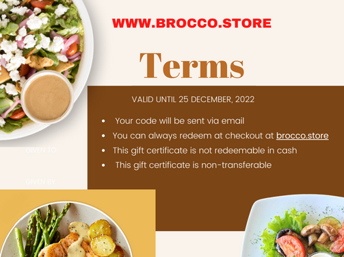 Available in a digital format, each Brocco gift card is easy to redeem at checkout. You can buy a card and it will be sent via email to the person its intends for. The person will redeem the card at checkout.