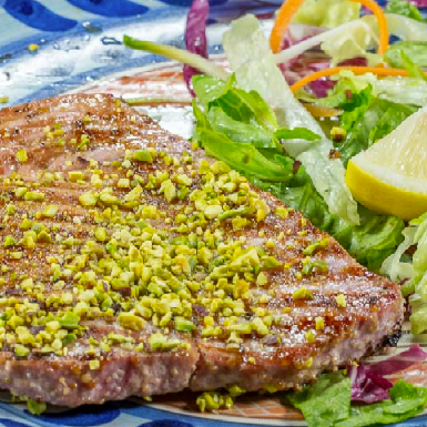 - Deep fried tuna with picked onions, pistachio in olive oil
