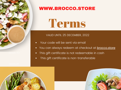 Available in a digital format, each Brocco gift card is easy to redeem at checkout. You can buy a card and it will be sent via email to the person its intends for. The person will redeem the card at checkout.